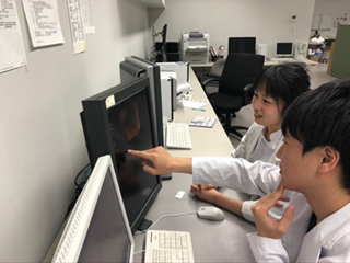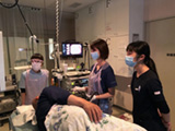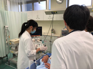 (午後から週2回のER研修。指導医に見守られながら心エコーを)